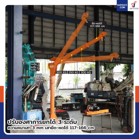 ปรับองศาการยก/ความสูงแขนได้ 3 ระดับ พร้อมแขนเครนแบบยืด-หดได้ ช่วยให้จัดตำแหน่งยกสินค้าได้สะดวกมากขึ้นหมุนลื่น 360° ควบคุมง่าย