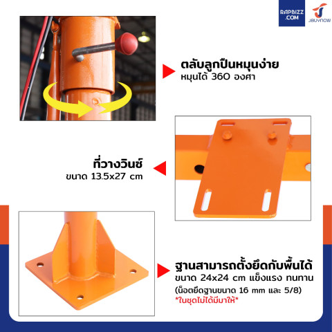มาพร้อมตลับลูกปืน ช่วยให้หมุนเครนได้ 360 องศา และมีด้ามจับสำหรับหมุนเครน เพิ่มความคล่องตัวในการทำงานถอดประกอบได้ เคลื่อนย้ายสะดวก