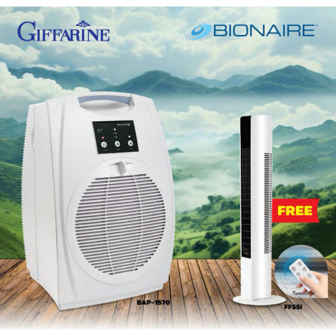 เครื่องฟอกอากาศ กิฟฟารีน BIONAIRE รุ่น BAP-1570 ตัวช่วยยกระดับอากาศภายในบ้านให้สะอาดสดชื่น เหมาะอย่างยิ่งสำหรับผู้ที่กังวลเรื่องฝุ่น PM2.5 และผู้ที่มีอาการแพ้/ระคายเคืองทางเดินหายใจ ให้คุณและคนที่คุณรักหายใจได้เต็มปอดทุกวัน