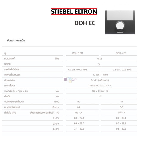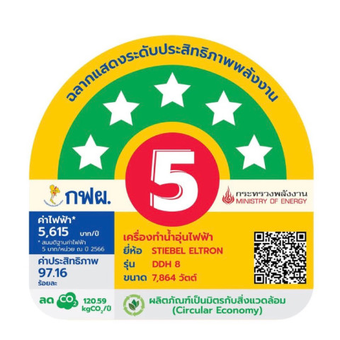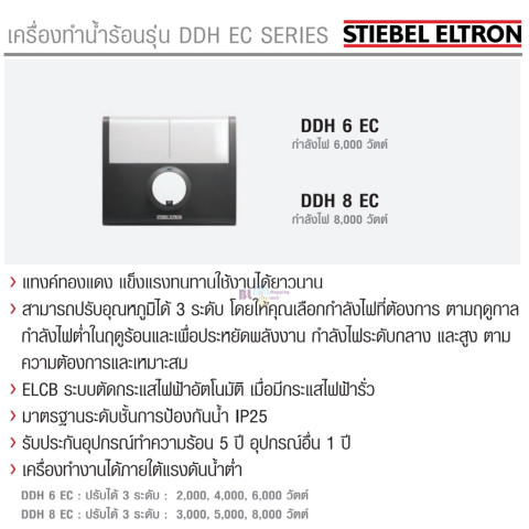 STIEBEL ELTRON เครื่องทำน้ำร้อน 8000 วัตต์ รุ่น DDH8EC มอบน้ำอุ่น/น้ำร้อนได้รวดเร็วทันใจ พร้อมระบบความปลอดภัยครบครัน เหมาะสำหรับบ้านและคอนโดที่ต้องการเครื่องคุณภาพสูง ทนทาน ใช้งานมั่นใจ พร้อมรับประกันศูนย์ 5 ปี (อุปกรณ์ทำความร้อน) ในราคา 6,832.40 บาท