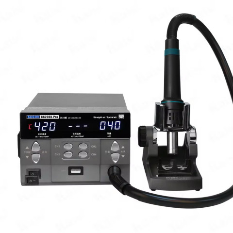 เครื่องเป่าลมร้อน Hot Air- SUGON 8620DXPro แท้ 100% กำลังไฟ 1300W รุ่นใหม่ปี 2023 ถูกออกแบบมาสำหรับงานซ่อมบัดกรีมืออาชีพ ให้ลมร้อนคงที่ ควบคุมอุณหภูมิแม่นยำ เหมาะสำหรับงานซ่อมแผงวงจร โทรศัพท์มือถือ คอมพิวเตอร์ และอุปกรณ์อิเล็กทรอนิกส์หลากหลายประเภท พร้อมการรับรองมาตรฐานความปลอดภัยสากล CE และ FCC มั่นใจได้ทั้งคุณภาพและความปลอดภัยในการใช้งาน
