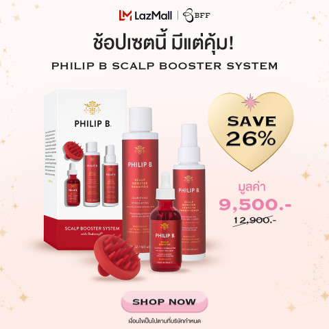 [สินค้าใหม่ Exclusive Set] Philip B - Scalp Booster System เซ็ตดูแลหนังศีรษะระดับพรีเมียม ที่ออกแบบมาเพื่อ “รีเซ็ต” สุขภาพหนังศีรษะให้แข็งแรง ลดโอกาสผมร่วงจากการอุดตัน ความมันส่วนเกิน และการระคายเคือง พร้อมช่วยบรรเทาอาการคันและรังแค ให้โคนผมดูแน่นขึ้น ผมดูมีวอลลุ่มและสุขภาพดีตั้งแต่รากจรดปลาย เหมาะสำหรับคนที่ต้องการดูแลแบบจริงจังในเซ็ตเดียว