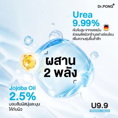 Dr.PONG U9.9 RENEWAL CREAM 50g ครีมฟื้นบำรุงผิวแห้งลอก แตก แห้งกร้าน พร้อมช่วยดูแลปัญหาขนคุด ศอกด้าน เข่าด้าน และผิวด้านจากการเสียดสี ให้ผิวกลับมาสัมผัสเนียนนุ่ม ชุ่มชื้น ดูสุขภาพดีในทุกวัน