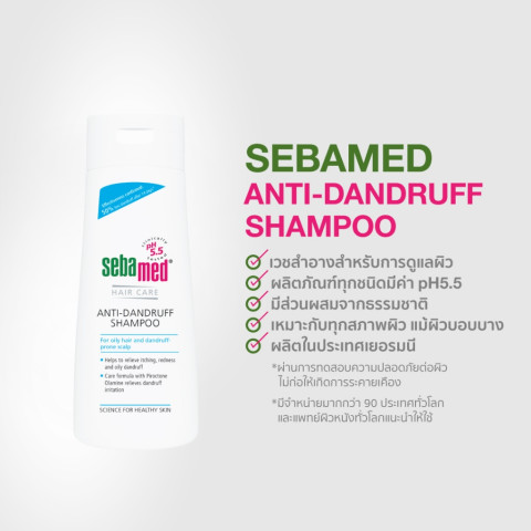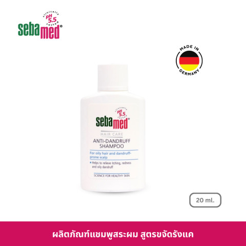 [ของสมนาคุณ ห้ามจำหน่าย] [Gift] SEBAMED ANTI-DANDRUFF SHAMPOO pH5.5 (20ML) แชมพูสระผมสูตรขจัดรังแค ขนาดพกพา เหมาะสำหรับทดลองใช้หรือพกเดินทาง ช่วยลดรังแคและอาการคันหนังศีรษะ พร้อมดูแลความสมดุลของหนังศีรษะด้วยค่า pH 5.5 เพื่อความอ่อนโยน ใช้ได้บ่อยเท่าที่ต้องการ