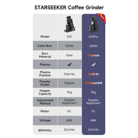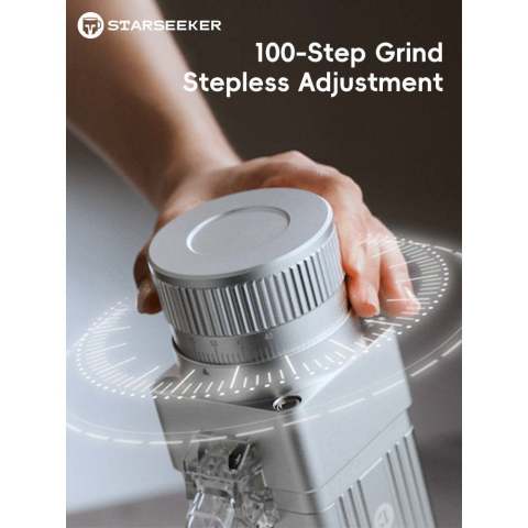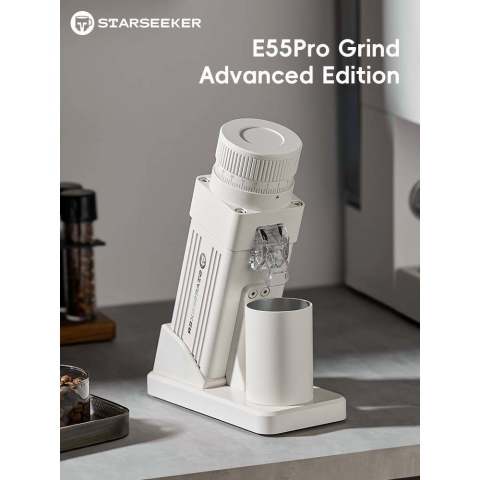 STARSEEKER E55Pro เครื่องบดกาแฟไฟฟ้า 55MM Titanium Cone Burr ยกระดับการชงกาแฟที่บ้านให้ได้รสชาติแบบบาริสต้า ด้วยเฟืองบดทรงกรวยเคลือบไทเทเนียมขนาด 55 มม. ให้ความคม ทนทาน และบดได้สม่ำเสมอ ช่วยดึงรสชาติและกลิ่นหอมของเมล็ดกาแฟออกมาอย่างเต็มที่ พร้อมระบบปรับความละเอียดแบบ Stepless ที่หมุนปรับได้เนียนละเอียด เหมาะอย่างยิ่งสำหรับสายเอสเปรสโซที่ต้องการความแม่นยำทุกช็อต