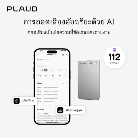 Plaud Inc. เจ้าของแบรนด์จากซานฟรานซิสโก ผู้นำด้านโซลูชัน AI-Native สำหรับการจดบันทึก ได้รับความไว้วางใจจากผู้ใช้ทั่วโลกมากกว่า 1,000,000+ ราย ให้คุณเปลี่ยน “เสียง” ให้เป็น “งานที่เสร็จ” ได้ง่ายกว่าเดิม
