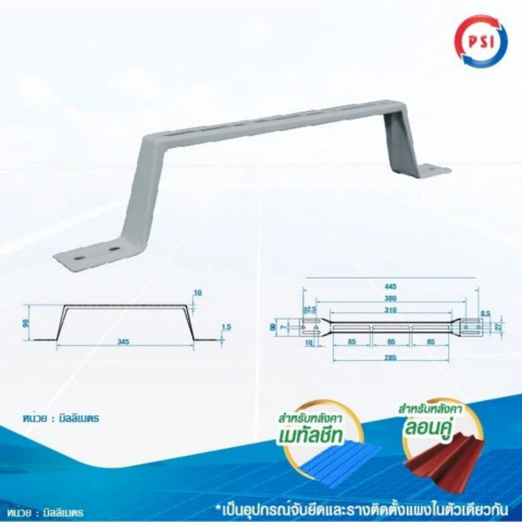 ใช้เป็นขายึดสำหรับจับยึดระหว่างแผงโซล่าเซลล์กับหลังคาเมทัลชีท