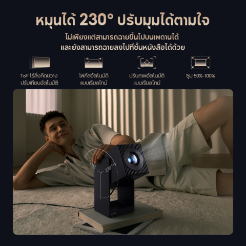หมุนได้ 230° ปรับมุมฉายได้ตามใจ ฉายเพดาน/ฉายมุมเอียงได้สะดวก