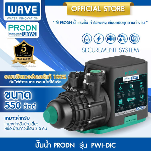ปั๊มน้ำ PRODN BY WAVE รุ่น PWI-DIC (200W / 400W / 800W) ปั๊มน้ำอัตโนมัติระบบอินเวอร์เตอร์ที่ออกแบบมาเพื่อ “น้ำไหลแรงคงที่ ไม่มีสะดุด” พร้อมช่วยประหยัดพลังงาน ลดค่าไฟในระยะยาว เหมาะทั้งบ้านพักอาศัย ทาวน์เฮาส์ ไปจนถึงบ้าน 2-3 ชั้นที่ต้องการแรงดันน้ำเสถียรตลอดวัน