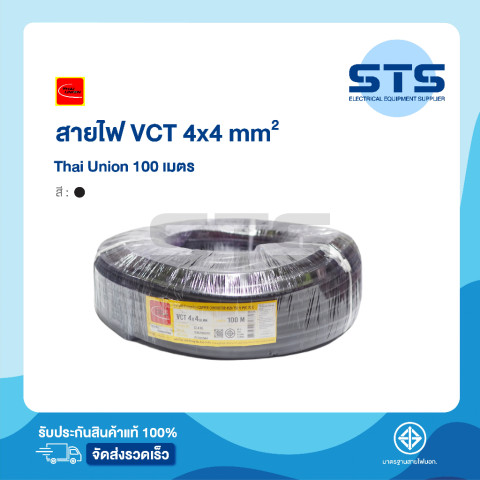 สายไฟ VCT 4x4 Thai Union (ไทยยูเนี่ยน) ยาว 100 เมตร สายไฟอ่อนคุณภาพสูง ได้มาตรฐาน มอก. เหมาะสำหรับงานเดินไฟที่ต้องการความยืดหยุ่น ทนทาน ใช้งานได้ทั้งงานช่าง งานก่อสร้าง โรงงาน และงานติดตั้งทั่วไป คุ้มค่าด้วยราคาสุดพิเศษ เพียง 10,415.00 บาท