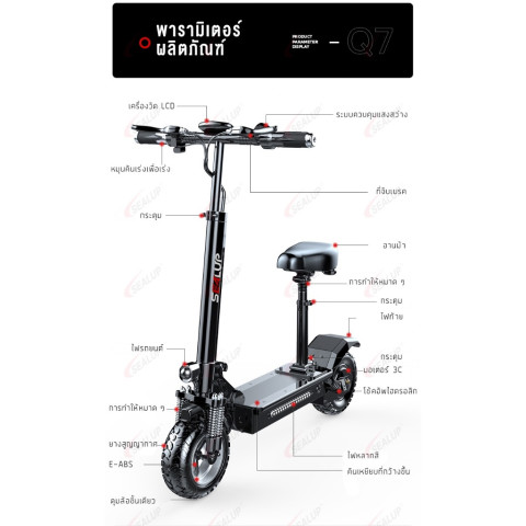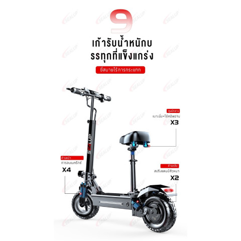 SEALUP Q7 48V1000W รถสกู๊ตเตอร์ไฟฟ้ารุ่นออฟโรดสำหรับผู้ใหญ่ (และเด็กโต) ที่ครบเครื่องทั้งแรง เร็ว และอึด พร้อมดีไซน์พับได้ภายใน 3 วินาที พกพาสะดวก ไม่เปลืองพื้นที่ เหมาะทั้งการใช้งานในเมืองและลุยทางขรุขระด้วยยางออฟโรดดอกลึกเกาะถนนมั่นใจ มาพร้อมระบบกันน้ำระดับ IP54 และระบบ NFC เพื่อความสะดวกและความปลอดภัยยิ่งขึ้น ในราคาคุ้มค่า 23,439.25 บาท