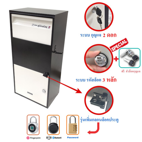 มีกลไกช่วยป้องกันการขโมย รับพัสดุจากด้านบน เก็บในช่องล่างที่ล็อคได้