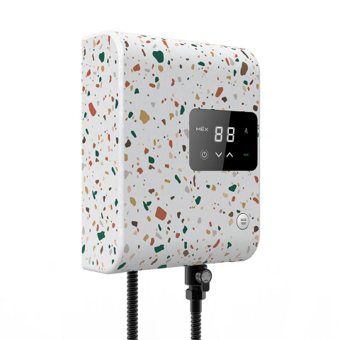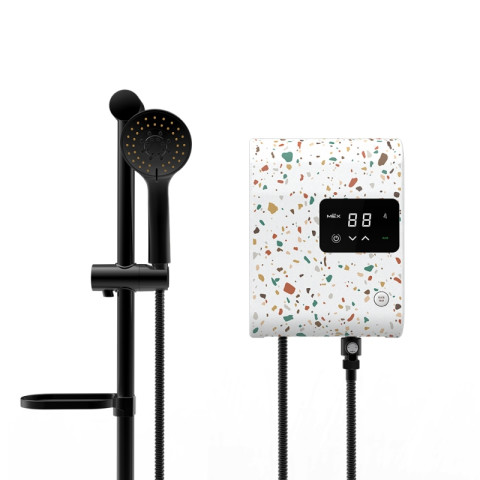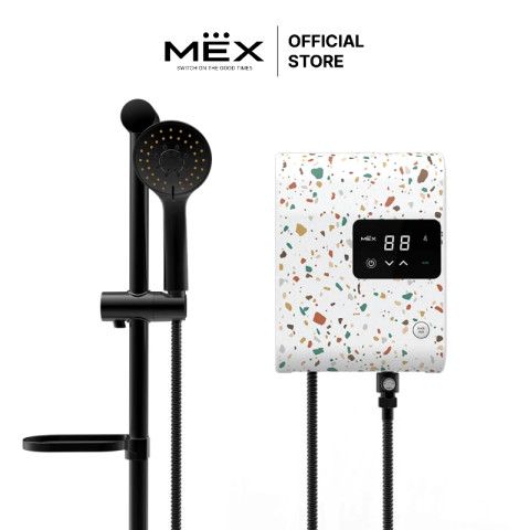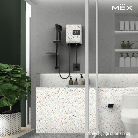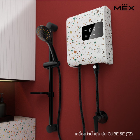 MEX เครื่องทำน้ำอุ่น 5,100W รุ่น CUBE 5E (TZ) ลาย TERRAZZO ดีไซน์พิเศษ Special Limited Edition 2022 เติมความพรีเมียมให้ห้องน้ำด้วยลาย Terrazzo สุดโดดเด่น มาพร้อมหน้าจอดิจิตอลและระบบสัมผัส ปรับอุณหภูมิได้ละเอียด 32–48°C ให้คุณอาบอุ่นสบายอย่างมั่นใจ พร้อมระบบความปลอดภัยครบครัน เหมาะทั้งบ้านและคอนโดที่ต้องการเครื่องทำน้ำอุ่นประสิทธิภาพสูง