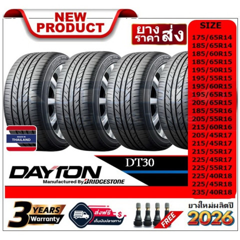 DAYTON DT30/HT100 | ชุด 4 เส้น ยางรถยนต์สำหรับรถเก๋ง ขอบ 14", 15", 16", 17", 18" (บางล็อตมีถึง 20" ตามรายการที่ร้านลง) ยางใหม่ปี 2024-2026 คัดสรรล็อตใหม่ ส่งตรงจากแหล่งผลิต พร้อมส่งฟรีทั่วประเทศ เหมาะสำหรับคนที่ต้องการยางคุ้มค่า ขับนุ่ม เงียบ และมั่นใจได้ทั้งถนนแห้ง/ถนนเปียก