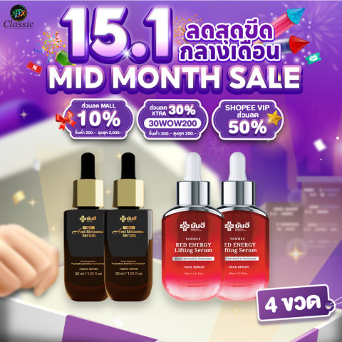 โปรโมชั่น Yanhee ยันฮีเมลาสม่า ยันฮีเรด อายเซรั่ม เซ็ตดูแลผิวแบบเข้มข้น เพื่อคนที่กังวลเรื่องฝ้า กระ จุดด่างดำ สีผิวไม่สม่ำเสมอ และริ้วรอย ช่วยให้ผิวดูใส เรียบเนียน ดูอ่อนเยาว์ขึ้นอย่างเป็นธรรมชาติ