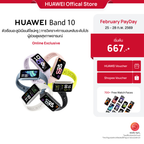 [2.25 - 2.28 | โค้ดลด 25%] HUAWEI Band 10 สมาร์ทวอชดีไซน์พรีเมียมด้วยตัวเรือนอะลูมิเนียม น้ำหนักเบา ใส่สบายตลอดวัน เหมาะทั้งสายออกกำลังกายและใช้งานในชีวิตประจำวัน จัดเต็มฟังก์ชันสุขภาพและการแจ้งเตือนสำคัญ ช่วยให้คุณไม่พลาดทุกจังหวะ พร้อมอัปเกรดลุคให้ดูทันสมัยในเครื่องเดียว