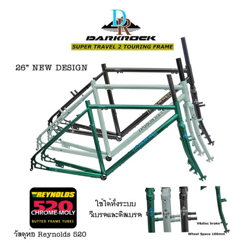 เฟรมจักรยานทัวร์ริ่ง DARKROCK SUPER TRAVEL 2 Touring Frameset 26" เฟรมคุณภาพเกินราคา สำหรับสายทัวร์ริ่งที่อยากได้ความอึด ถึก ลุยได้จริง ทั้งทางเรียบ ทางฝุ่น โคลน น้ำ พร้อมจุดยึดอุปกรณ์แบบจัดเต็ม เหมาะกับการเดินทางไกลและการบรรทุกสัมภาระอย่างมั่นใจ ในราคา 11,000.00 บาท