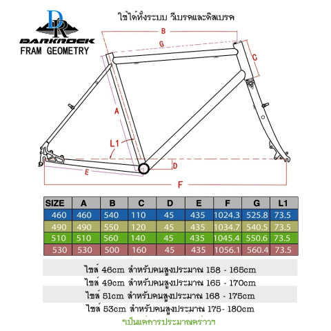 ไซส์: 51cm (โดยทั่วไปเหมาะกับความสูงประมาณ 168–175cm ทั้งนี้ขึ้นอยู่กับสัดส่วนผู้ขี่และการฟิตติ้ง)