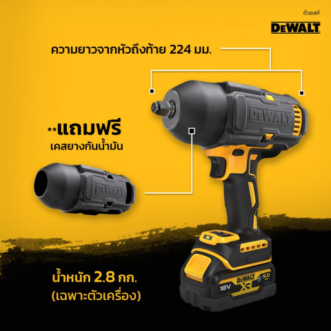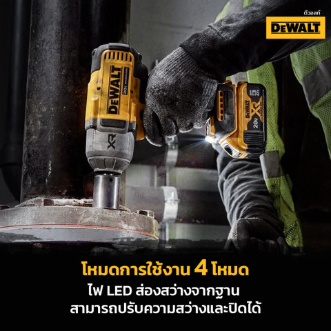 DEWALT บล็อคกระแทกไร้สาย DCF900N / DCF900P2T รุ่น High Torque เจนเนอเรชันใหม่ แรงที่สุดของเรา ตอบโจทย์งานขัน-คลายน็อตหนักๆ อย่างมืออาชีพ ทั้งงานซ่อมรถ งานโครงสร้าง และงานติดตั้งที่ต้องการแรงบิดสูง ใช้งานคล่องตัวด้วยดีไซน์กะทัดรัด พร้อมไฟส่องสว่างจากฐานเพื่อการทำงานในพื้นที่แสงน้อย