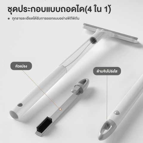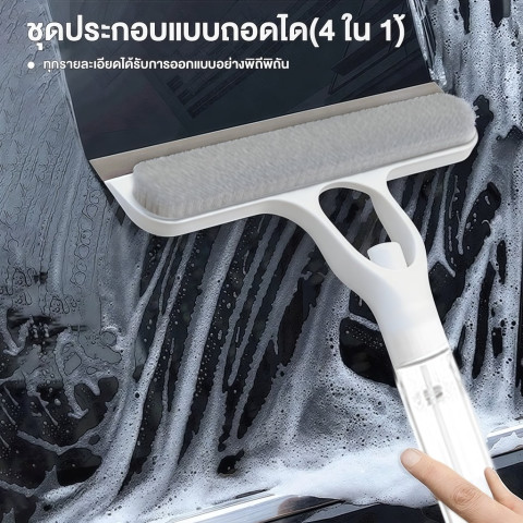 แบบ 4in1: ไม้ขูดยาง + แผ่นขัด + ขวดสเปรย์พร้อมด้ามจับ + แปรงที่ส่วนล่างของด้ามจับ
