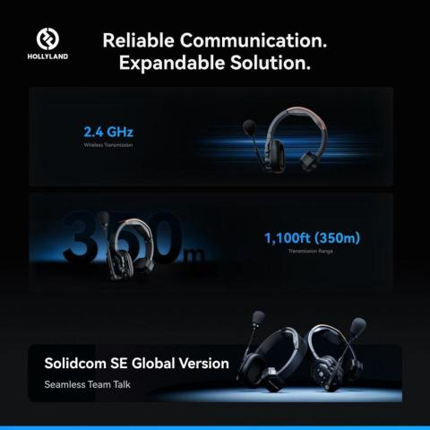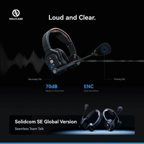 Hollyland Solidcom SE Wireless Headset-5S Global Version (2.4 GHz) ชุดหูฟังสื่อสารไร้สายสำหรับทีมงานมืออาชีพ ออกแบบมาเพื่อการทำงานที่ต้อง “คุยพร้อมกันได้จริง” ด้วยระบบ Full-Duplex (พูด-ฟังพร้อมกัน) ให้การประสานงานลื่นไหล เหมาะกับกองถ่าย งานอีเวนต์ ทีมโปรดักชัน ไลฟ์สตรีม รวมถึงการทำงานกลางแจ้งที่มีลม/ละอองน้ำ