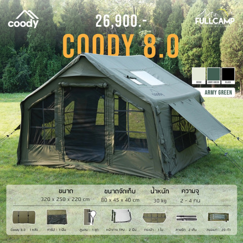 ไม่ว่าจะไปแคมป์ป่าหน้าหนาว หรือออกทริปทะเลหน้าร้อน Coody Air Tent 8.0 รุ่น Upgrade คือเต็นท์เสาลมที่ให้ทั้งความสะดวก ความสบาย และความมั่นใจในทุกการเดินทาง