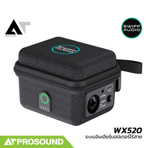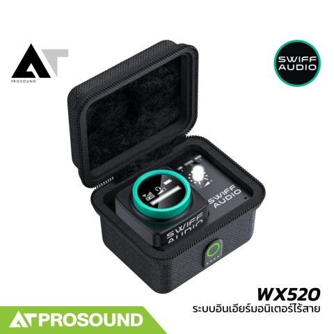 Swiff Audio WX520 ระบบอินเอียร์มอนิเตอร์ไร้สาย 5.8GHz (Transmitter + Receiver) ชาร์จแบตผ่านเคสได้ จาก AT Prosound ในราคา 5,900.00 บาท ออกแบบมาเพื่อยกระดับการมอนิเตอร์บนเวทีและในห้องซ้อม ให้คุณได้ยินเสียงร้อง/เครื่องดนตรีอย่างคมชัดเป็นธรรมชาติ พร้อมความหน่วงต่ำมาก ช่วยลดปัญหาเสียงก้องและเพิ่มอิสระในการเคลื่อนไหวขณะเล่นสด