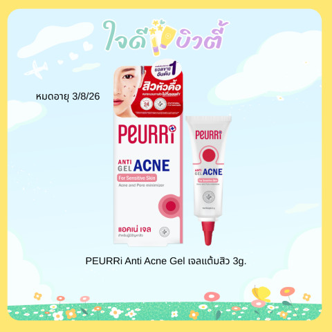 [สินค้าแถมงดกดซื้อ] เมื่อซื้อสินค้าครบ 399 บาท รับฟรี PEURRi Anti Acne Gel เจลแต้มสิว 3g เจลแต้มสิวสูตรดูแลปัญหาสิวแบบครบวงจร แต้มได้ทุกสภาพสิว ไม่ว่าจะเป็นสิวอักเสบ สิวผด สิวอุดตัน หรือสิวฮอร์โมน เนื้อเจลซึมไว ช่วยลดการสะสมของเชื้อสิว พร้อมดูแลรอยสิวให้ดูจางลง เหมาะสำหรับใช้ต่อเนื่องเป็นประจำ และสามารถใช้ร่วมกับการรักษาสิวทางการแพทย์ได้