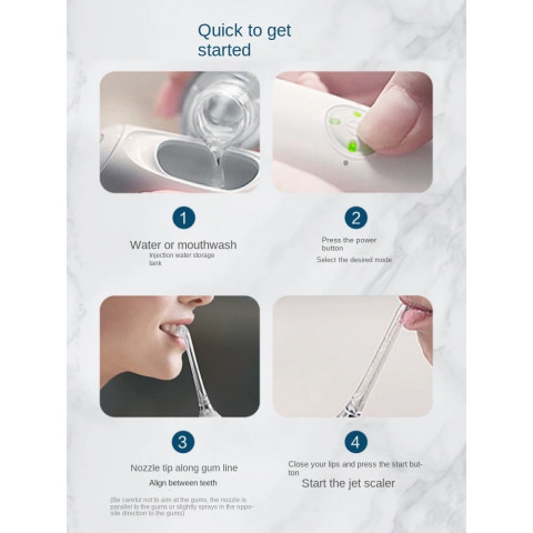เล็งหัวฉีดไปตามร่องเหงือกและซอกฟัน ไล่จากด้านในสู่ด้านนอก