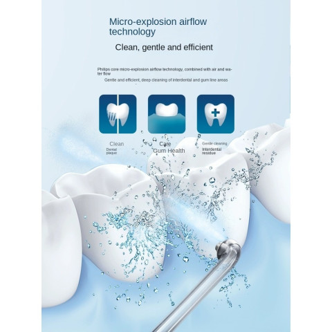 Philips HX8331 ไหมขัดฟันไฟฟ้าโซนิคแบบพกพา มอบความสะอาดล้ำลึกแบบ “เครื่องชลประทานในช่องปาก” ด้วยเทคโนโลยี Microburst ที่ผสานแรงดันอากาศและละอองน้ำยาบ้วนปาก/น้ำเป็นหยดเล็ก ๆ พุ่งเข้าซอกฟันอย่างแม่นยำ ช่วยลดคราบสะสมและเศษอาหารในจุดที่แปรงสีฟันเข้าถึงยาก เหมาะสำหรับผู้ที่จัดฟัน ใส่รีเทนเนอร์ หรืออยากยกระดับการดูแลช่องปากให้สะอาดมั่นใจทุกวัน