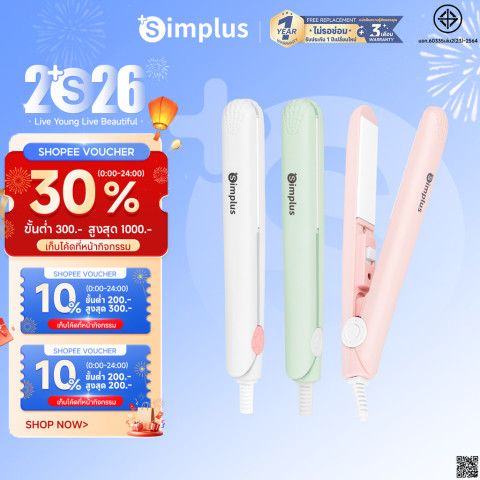 Simplus Mini เครื่องหนีบผม ขนาดเล็ก พกพาสะดวก ใช้งานได้ 2 แบบ รุ่น ZFBA007fz (สีขาว)