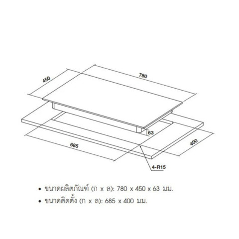 วัสดุหน้าเตา: กระจกนิรภัยสีดำ ตัดแต่งขอบเฉียงทั้ง 4 ด้าน