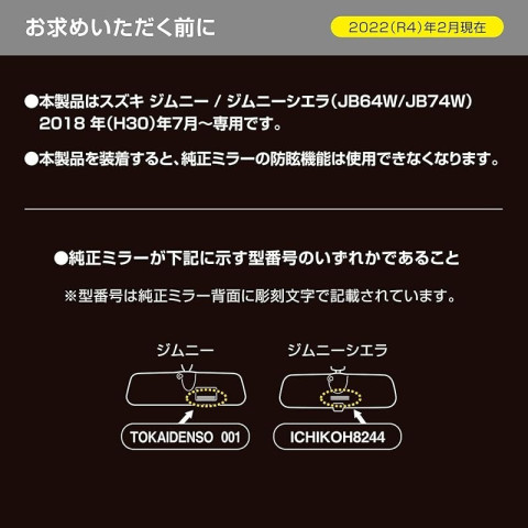 รุ่นสินค้า: CARMATE Glass Car Room Mirror for Jimny (JB64)/Jimny Sierra (JB74) Rear View Mirror & Cover 3000SR