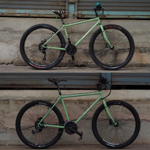 จุดเด่นสำคัญคือสามารถใช้ได้กับทั้งล้อ 26 นิ้ว และ 27.5 นิ้ว (ดิสก์เบรค) ทำให้คุณเลือกเซ็ตอัปได้ตามสไตล์การปั่น ไม่ว่าจะเน้นความคล่องหรือความเร็ว พร้อมสีเขียว Olive สุดเท่ที่ให้ลุคคลาสสิกแบบจักรยานทัวร์ริ่งสายลุย ตัวเดียวจบทั้งเรื่องสไตล์และฟีลลิ่งการปั่น