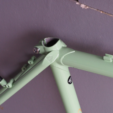 ตัวเฟรมผลิตจากโคโมลี่คุณภาพสูง 4130 double butted เชื่อมแบบ LUG ให้ทั้งความแข็งแรง ทนทาน และสัมผัสการปั่นที่นุ่มนวลเป็นเอกลักษณ์ ขี่ได้นุ่มแต่มั่นคง ควบคุมง่ายทั้งทางเรียบและทางขรุขระ มาพร้อมตะเกียบหน้าคู่ตัว รองรับสเต็มขนาด 1 นิ้ว ช่วยให้การควบคุมรถเป็นไปอย่างคล่องตัวและบาลานซ์ได้ดี