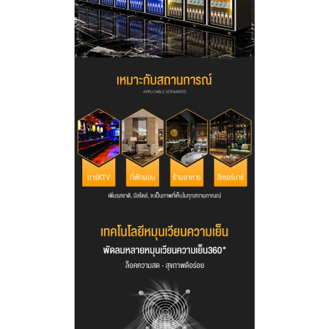 อุณหภูมิใช้งาน: 2–8°C ควบคุมความเย็นได้ดี เครื่องดื่มเย็นจัดแต่ไม่เป็นน้ำแข็ง