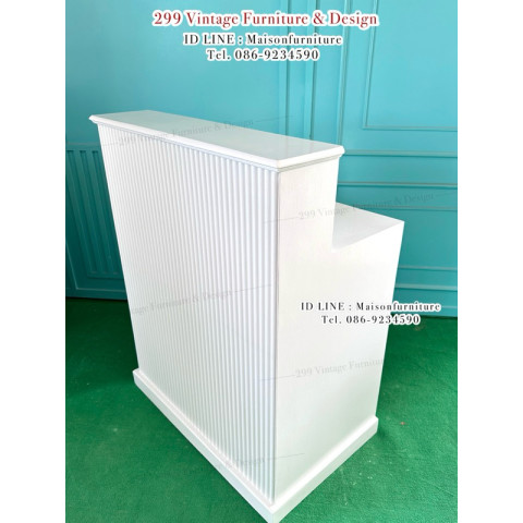 เพิ่มความเป็นมืออาชีพให้มุมต้อนรับหรือเคาน์เตอร์คิดเงินของคุณด้วย เคาน์เตอร์บาร์ลอน บาร์ต้อนรับสีขาว ดีไซน์เรียบหรู ทันสมัย ด้วยเส้นลอนด้านหน้าที่ช่วยเพิ่มมิติ ให้บรรยากาศร้านดูโดดเด่นมากขึ้น เหมาะสำหรับใช้เป็นเคาน์เตอร์แคชเชียร์ เคาน์เตอร์ต้อนรับ เคาน์เตอร์บาร์เครื่องดื่ม หรือมุมทำงานสไตล์มินิมอลในบ้านหรือออฟฟิศ