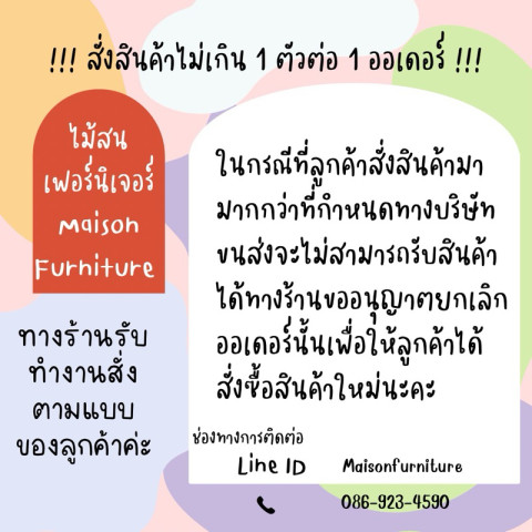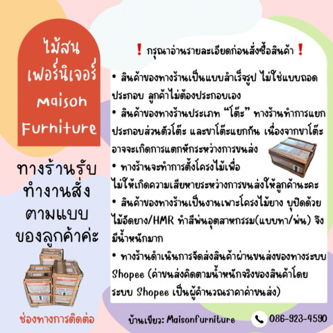 หากต้องการสอบถามข้อมูลเพิ่มเติมเรื่องขนาด การใช้งาน หรือการจัดส่ง สามารถติดต่อสอบถามทางร้านได้โดยตรง