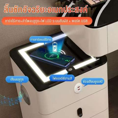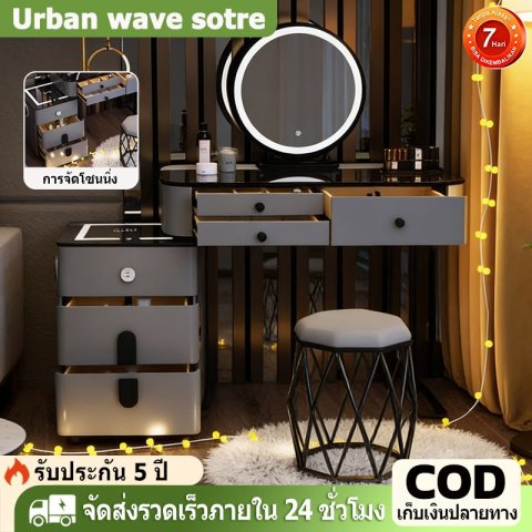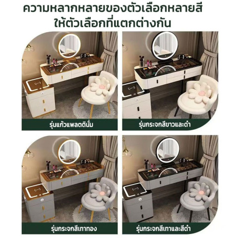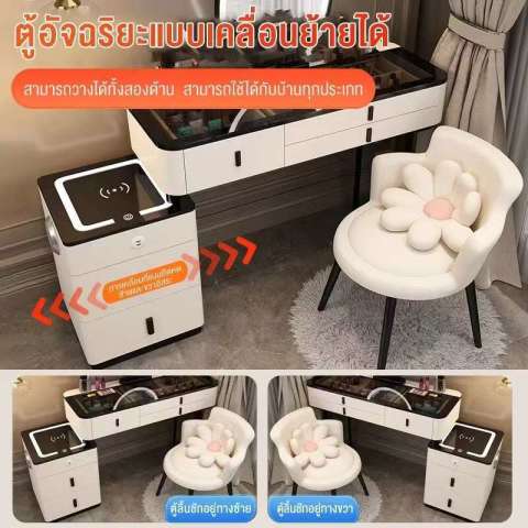 ชุดครบพร้อมใช้งาน มาพร้อมโต๊ะ ตู้เก็บของ กระจกไฟ LED และเก้าอี้ดีไซน์เข้าชุด ไม่ต้องหาซื้อแยกให้ยุ่งยาก