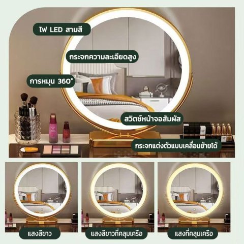 กระจกแต่งหน้า LED อัจฉริยะ กระจกสีชาคุณภาพสูง มาพร้อมไฟ LED ในตัว ปรับระดับความสว่างได้ 3 ระดับ ช่วยให้เห็นโทนสีเมคอัพชัดเจนทั้งกลางวันและกลางคืน