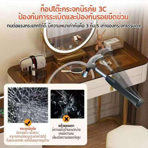 ด้วยดีไซน์สวยหรู ฟังก์ชันครบ และการจัดเก็บที่ชาญฉลาด Company mall โต๊ะเครื่องแป้งสไตล์โมเดิร์น กระจกสีชา กระจกไฟ LED ขนาด 120 ซม. สีเทาทอง คือคำตอบสำหรับคนที่ต้องการทั้งความสวยงามและความสะดวกสบายในชุดเดียว ให้ทุกเช้าที่คุณลุกขึ้นแต่งตัว เป็นช่วงเวลาที่น่ารื่นรมย์กว่าที่เคย