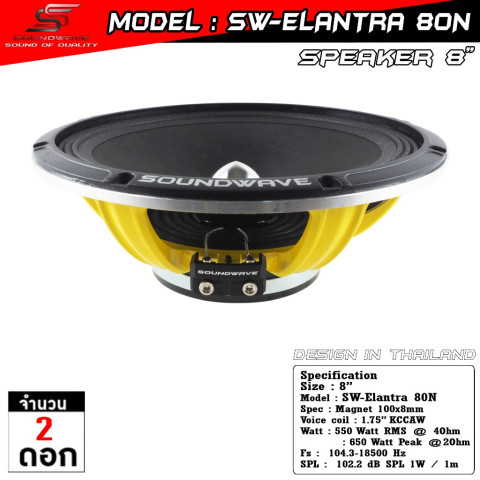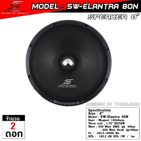 ยกระดับระบบเสียงรถยนต์ของคุณสู่ระดับ SQL ด้วย Soundwave Sw-Elantra 80N ดอกลำโพงเสียงกลาง มิดเรนจ์ 8 นิ้ว ตัวท็อป แม่เหล็กนีโอไดเมียม ลำโพง Mid-Range ระดับพรีเมียม ออกแบบมาเพื่อสายฟังดัง ฟังมันส์ แต่ยังคงความใส เคลียร์ และไพเราะในทุกรายละเอียดเสียงกลาง เหมาะทั้งแนวแข่งขันและใช้งานฟังจริงในชีวิตประจำวัน
