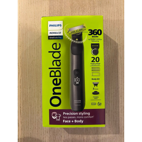 ด้วยดีไซน์ด้ามจับแบบใหม่พร้อมจอแสดงผลแบตเตอรี่แบบ LED และใบมีด 360 สำหรับทั้งใบหน้าและร่างกาย Philips OneBlade รุ่นนี้สามารถจัดการได้ทั้งหนวดเครา เส้นขน และการเก็บทรงได้อย่างแม่นยำ นุ่มนวลต่อผิว ใช้งานได้ยาวนานสูงสุด 120 นาทีต่อการชาร์จหนึ่งครั้ง ผ่านสายชาร์จ USB ที่ให้มาภายในกล่อง