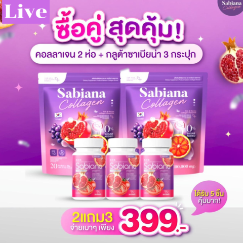 ชื่อรายการสินค้า: (LIVE) Sabiana โปรสดคุ้ม ซื้อ 2 แถม 3 ได้ 5 ชิ้น