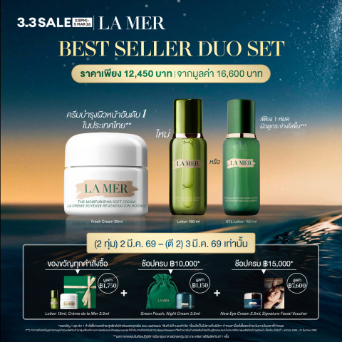 เปิดประสบการณ์การบำรุงผิวสุดหรูระดับไอคอนนิคด้วย [8pm 2 Mar 26 - 5 Mar 26 Exclusive Set] La Mer - 2pcs Skincare Set with Moisturizer 30ml & The Treatment Lotion 150ml (worth ฿16,600) • Bestseller Duo เซ็ตดูโอ้ยอดนิยมจาก La Mer ที่รวมสองผลิตภัณฑ์ตัวท็อป ช่วยฟื้นบำรุงผิวให้ชุ่มชื้น แน่นฟู ดูเปล่งประกาย สุขภาพดีอย่างเป็นธรรมชาติ ในราคาพิเศษเพียง ฿12,450