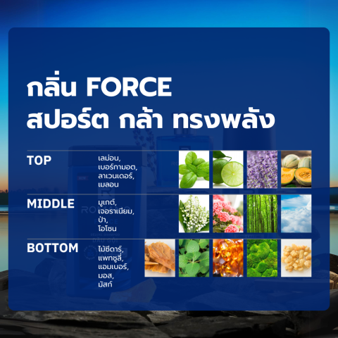 กลิ่นหอมแนวผู้ชายสมัยใหม่ – กลิ่น FORCE ผสานไม้ซีดาร์และเจอเรเนียม ให้กลิ่นหอมสดชื่นมีสไตล์ เหมาะกับหนุ่มลุคสปอร์ตและสายลุย