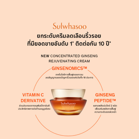 เซรั่มเนื้อบางเบาแต่ทรงพลัง อัดแน่นด้วย “แคปซูลโสม” ที่มองเห็นได้ในเนื้อผลิตภัณฑ์ ซึมลึกเพื่อดูแลปัญหาริ้วรอยและความหย่อนคล้อยอย่างตรงจุดNEW Concentrated Ginseng Rejuvenating Cream (50ml)