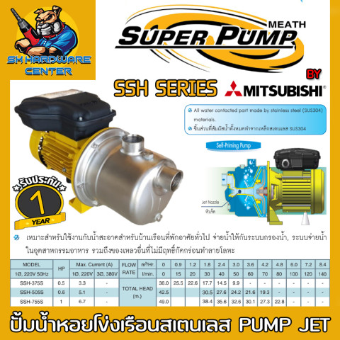 ปั้มน้ำหอยโข่งเรือนสเตนเลส SUPER PUMP BY MITSUBISHI รุ่น SSH (ขนาด 1") ราคา 5,030.00 บาท