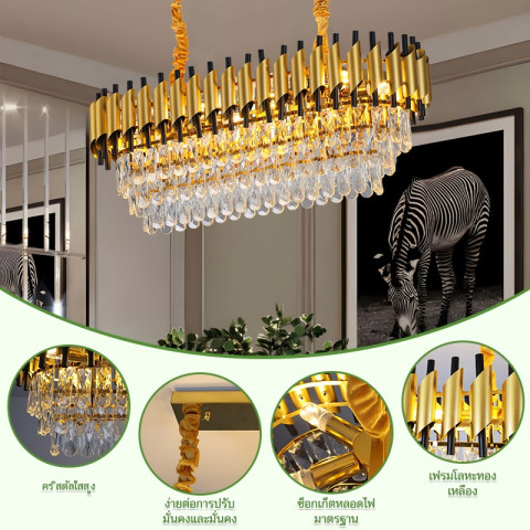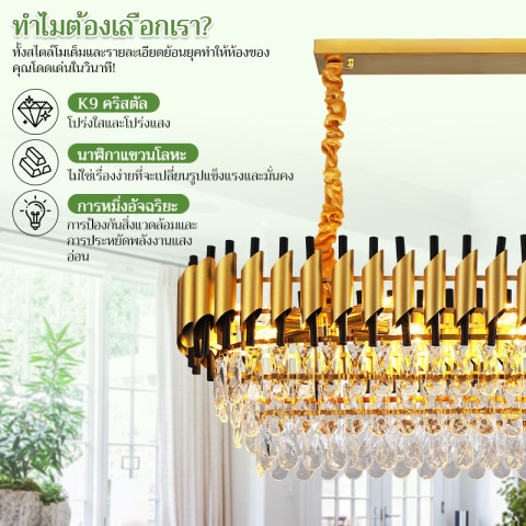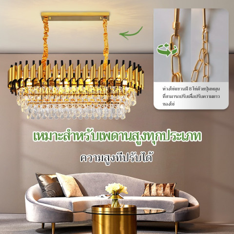 คริสตัลสวยเล่นแสง ช่วยเพิ่มมิติและความพรีเมียมให้พื้นที่ เมื่อเปิดไฟจะเกิดประกายระยิบระยับนุ่มนวล