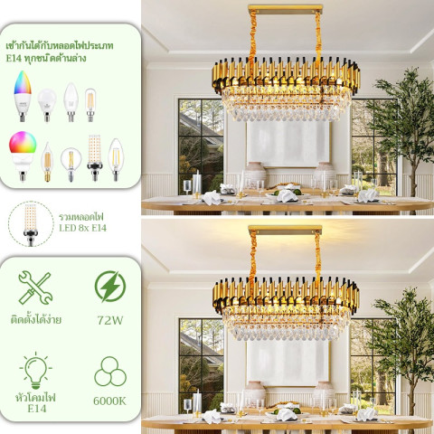 GEJIESE โคมไฟระย้าคริสตัลยุโรป 60 ซม. (รุ่น A-Heiguang-2) เติมเสน่ห์หรูหราให้บ้านด้วยประกายคริสตัลคุณภาพสูง ให้แสงสว่างสม่ำเสมอและดูละมุนตา เหมาะทั้งห้องนั่งเล่น ห้องทานข้าว โถงบันได หรือคาเฟ่ที่ต้องการบรรยากาศแบบยุโรปคลาสสิกในทันที